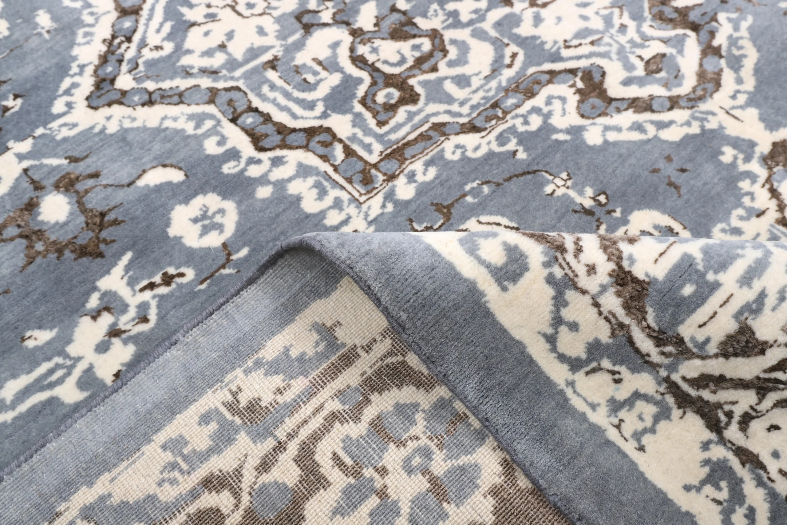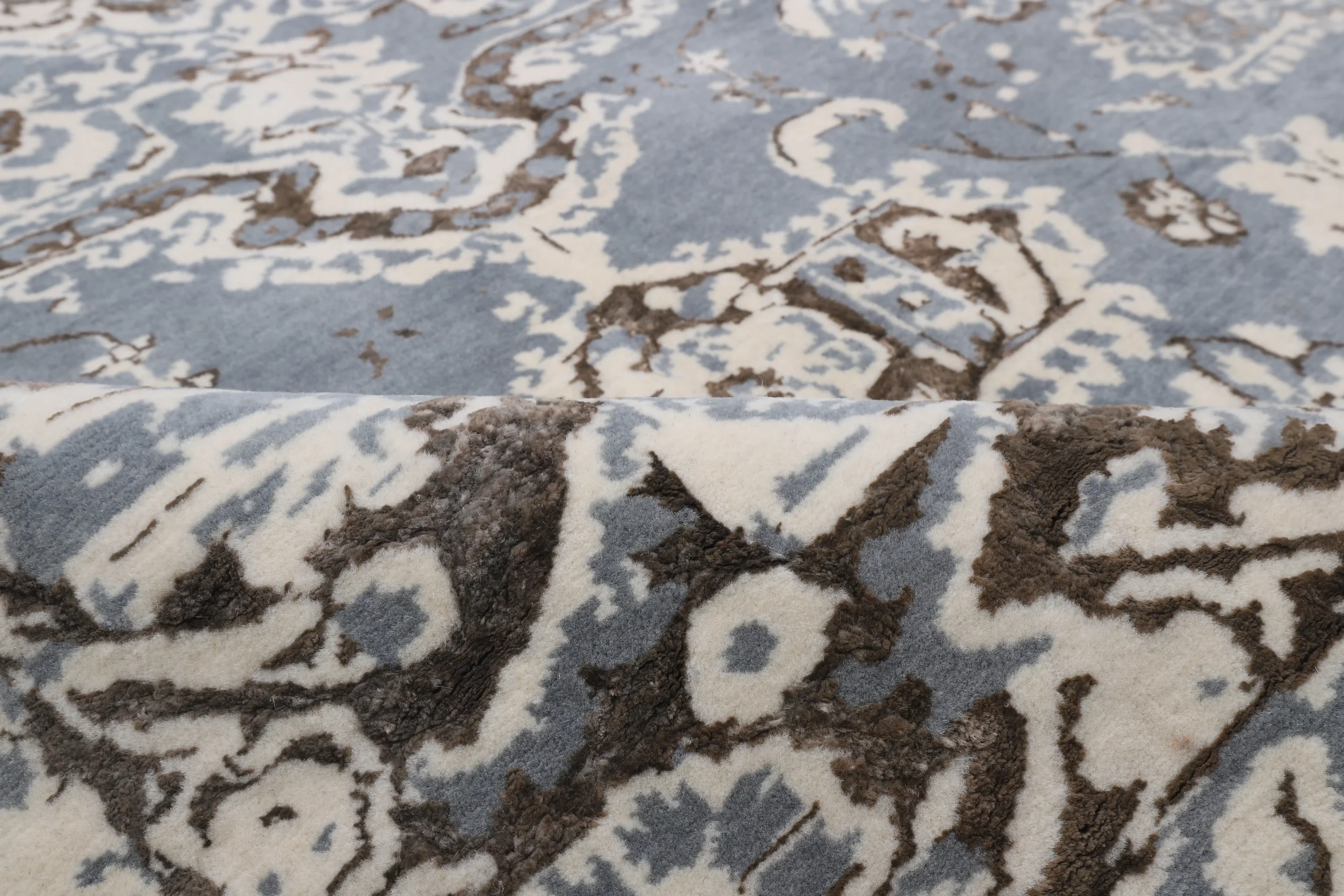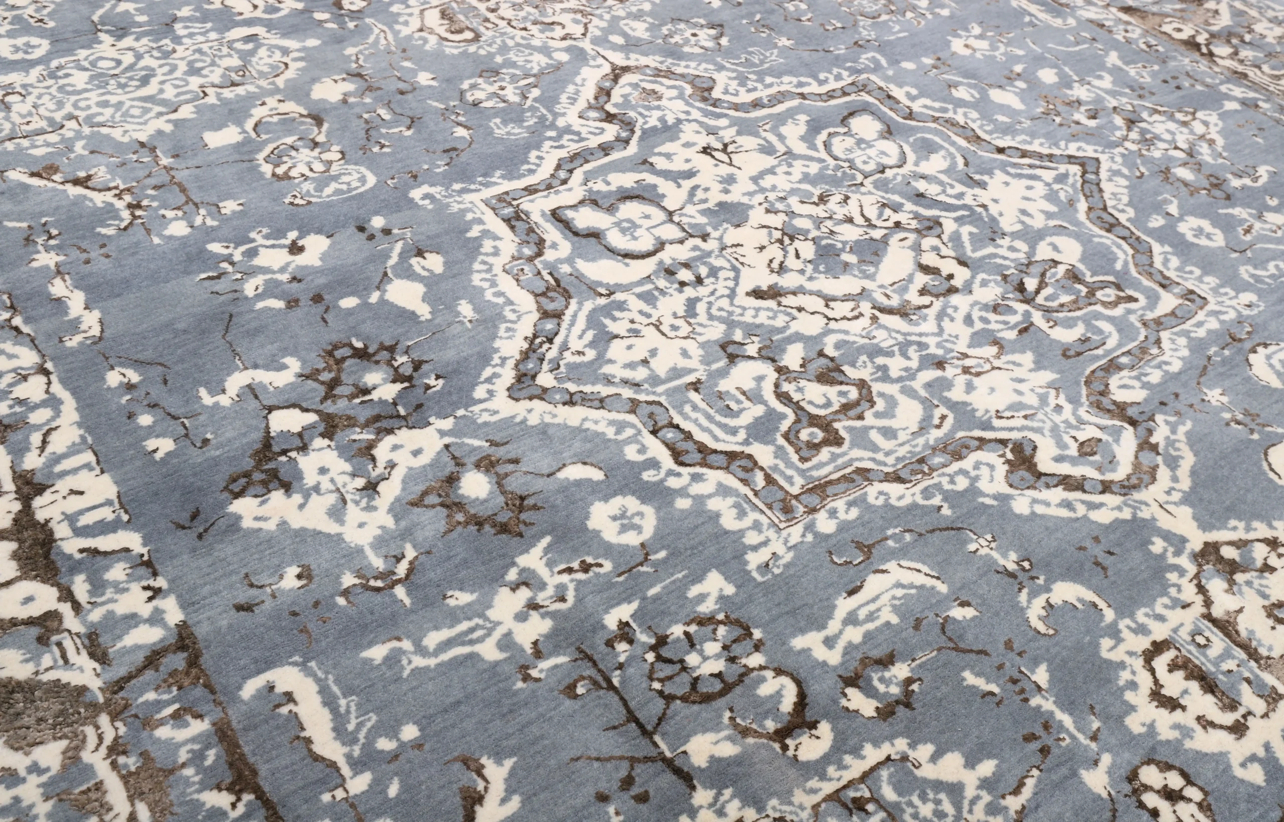 فرش دستباف کرک و ابریشم خاکستری قهوهای را میتوان در فضاهای مختلف استفاده کرد: