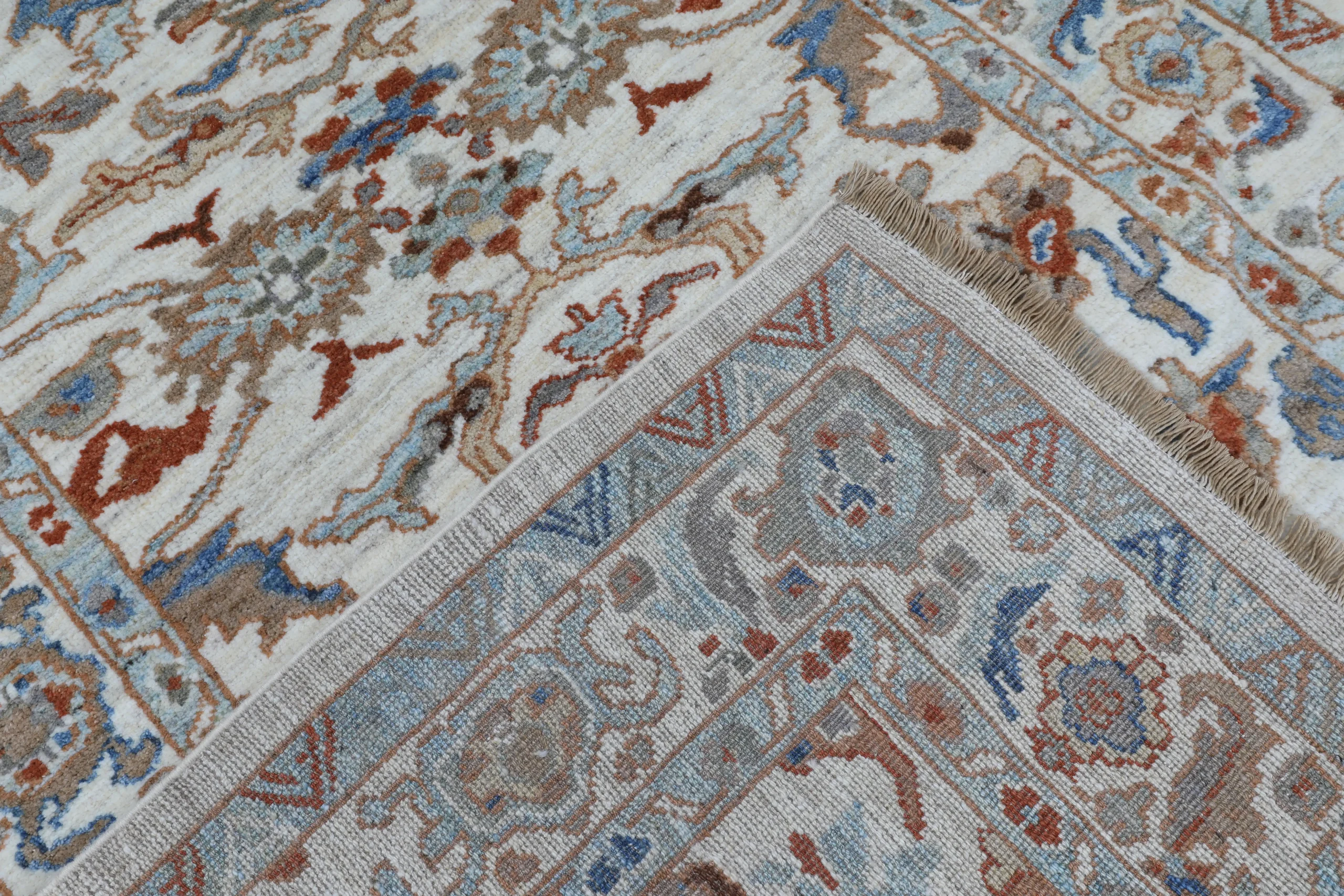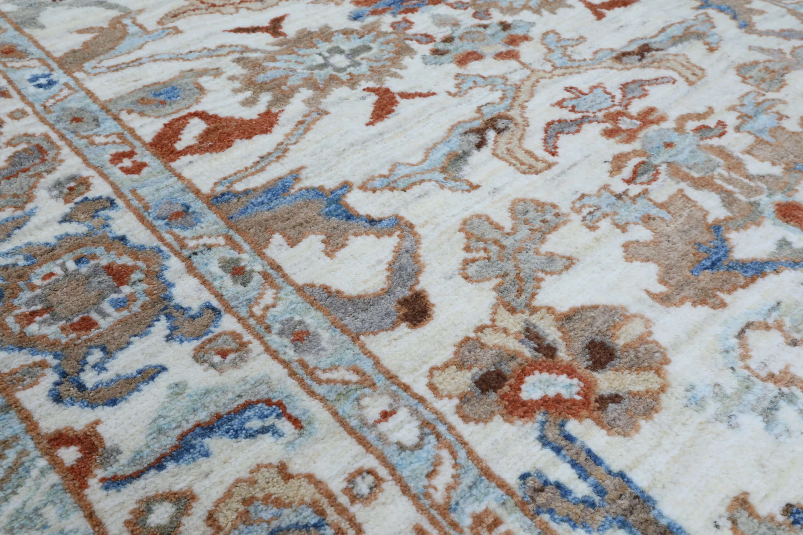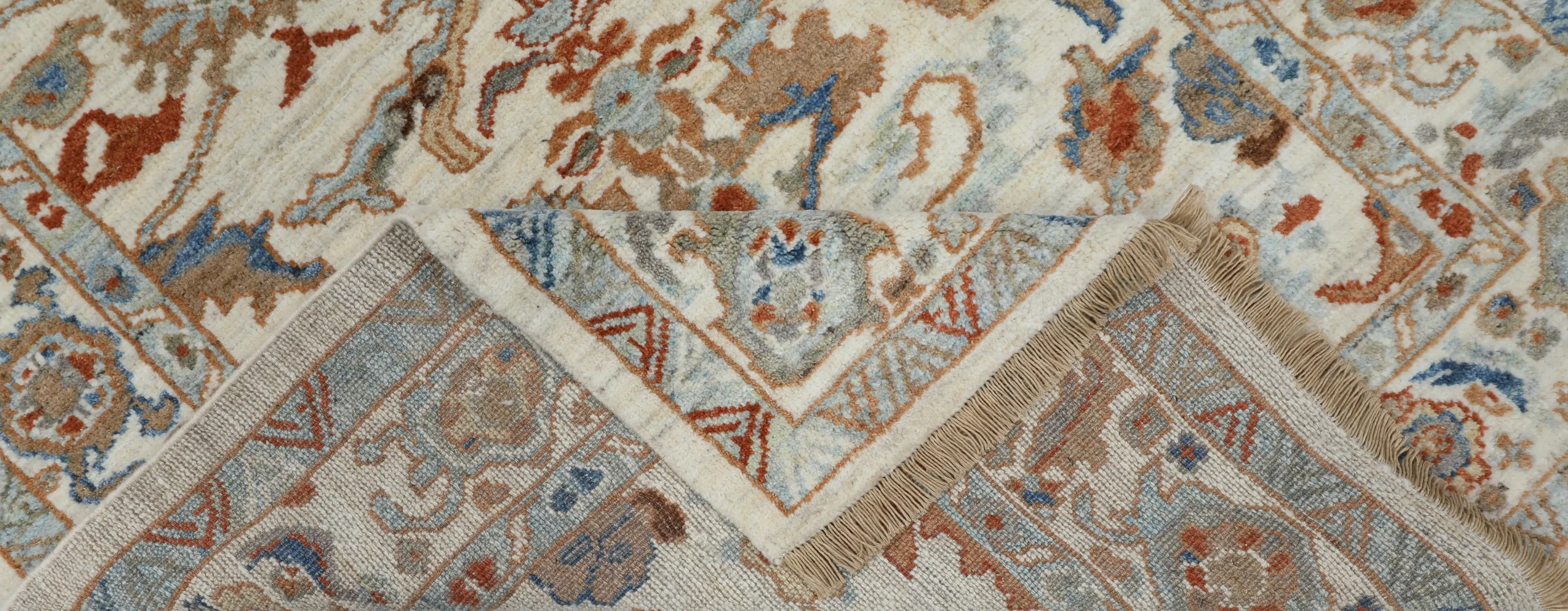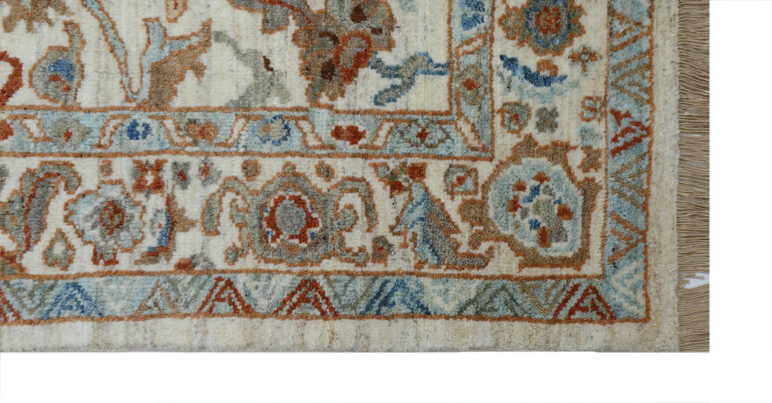 فرش دستبافت سلطان آباد طرح دستان قالیچه با گره متقارن و پشم دستریس، رنگرزی گیاهی و نقشه اصیل سلطان آباد؛ مناسب دکوراسیون لوکس و کلاسیک.