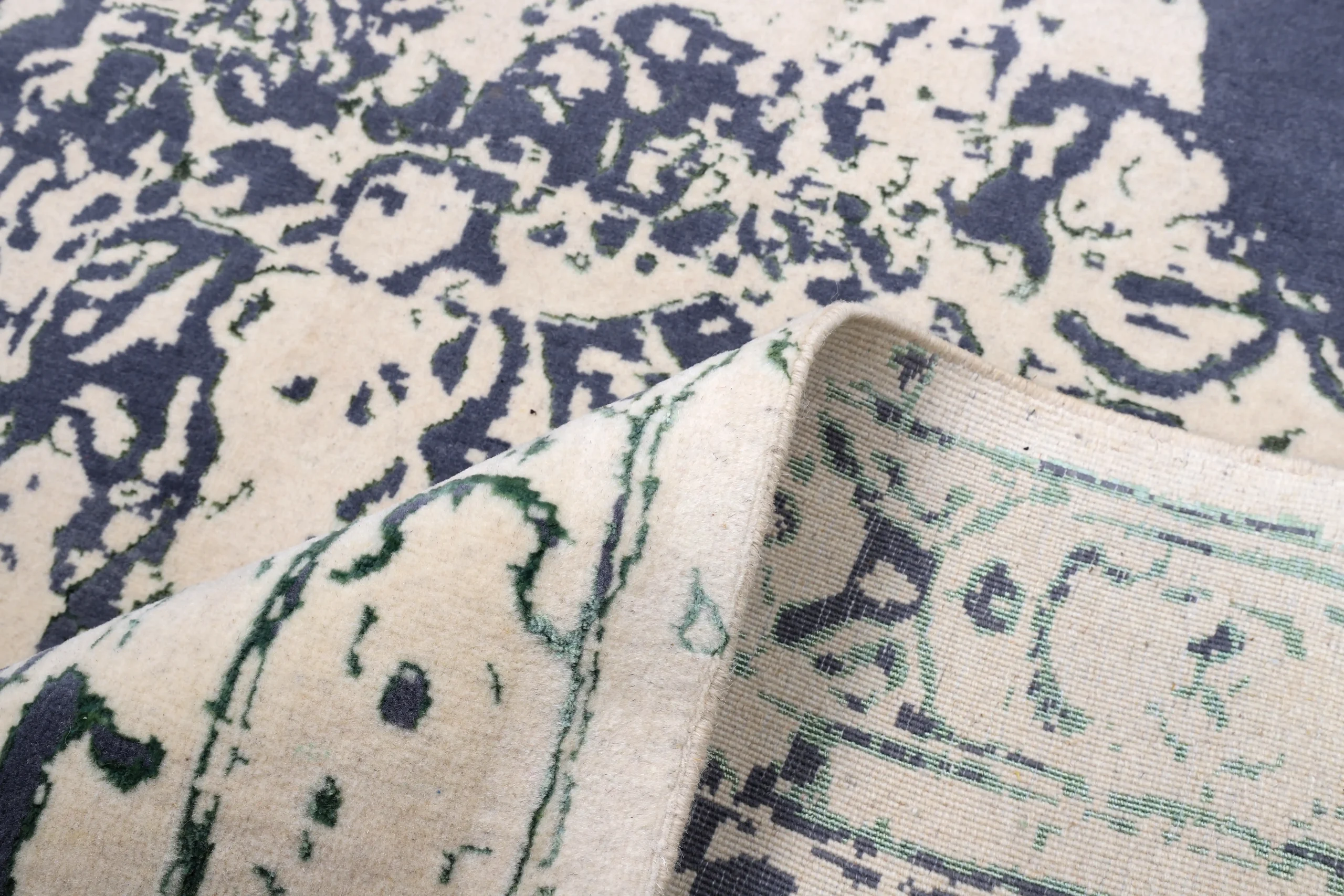 فرش دستباف کرک و ابریشم طوسی آبی دودی یکی از برترین نمونههای هنر قالیبافی ایرانی است که با ترکیب هنرمندانه الیاف طبیعی و طراحی منحصر بهفرد، جلوهای فاخر و شکیل به فضای زندگی شما میبخشد. این فرش با زمینهای در طیف طوسی آبی دودی طراحی شده است؛ رنگی آرام، مدرن و بسیار هماهنگ با چیدمانهای امروزی، که میتواند بهراحتی با مبلمان و اکسسوریهای مختلف ترکیب شود.