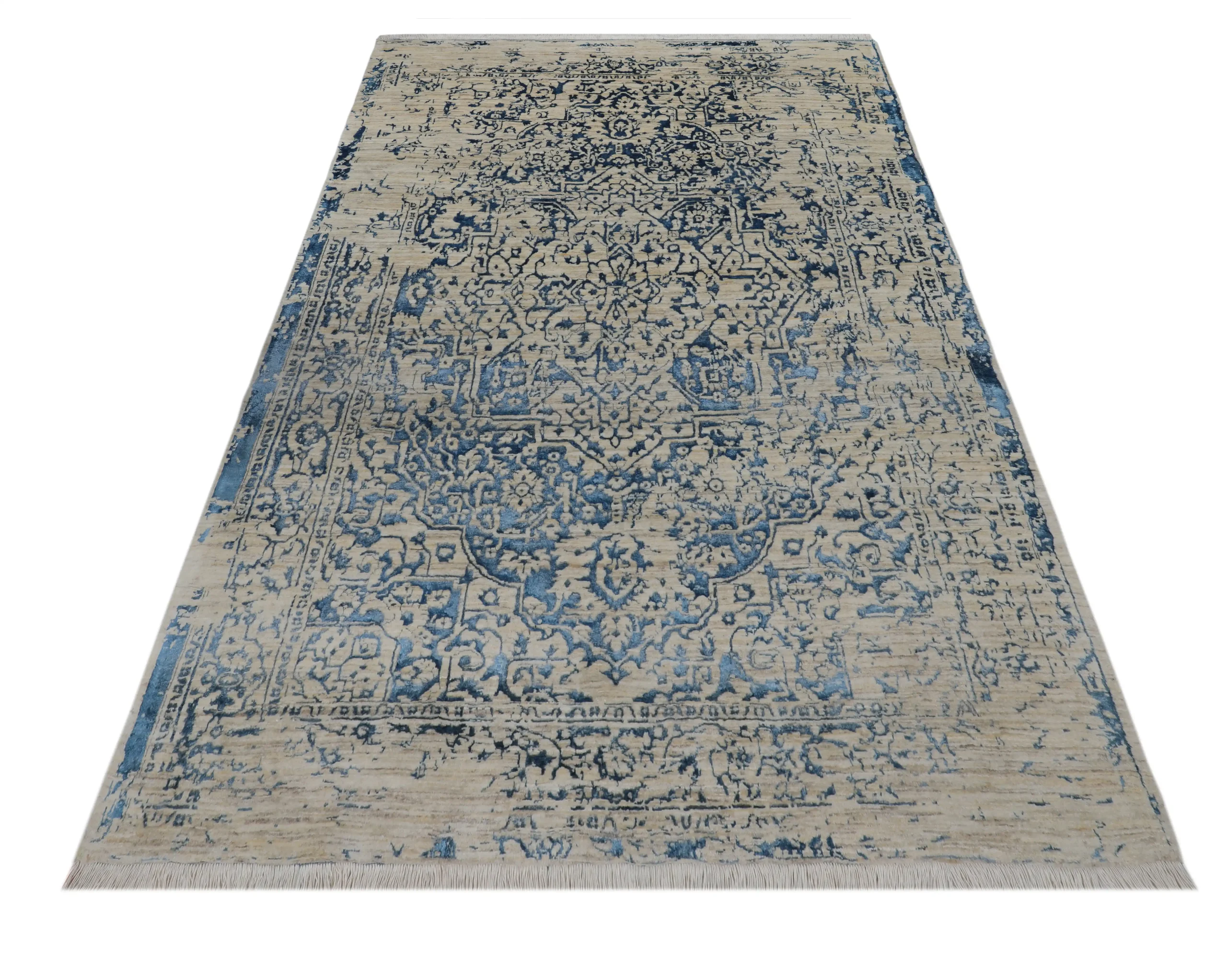 فرش دستبافت کرک و ابریشم طرح اطلس پرده‌ای، گره فارس (نامتقارن)، با رنگرزی گیاهی و بافت اصفهان — انتخابی لوکس برای دکوراسیون مدرن و کلاسیک.