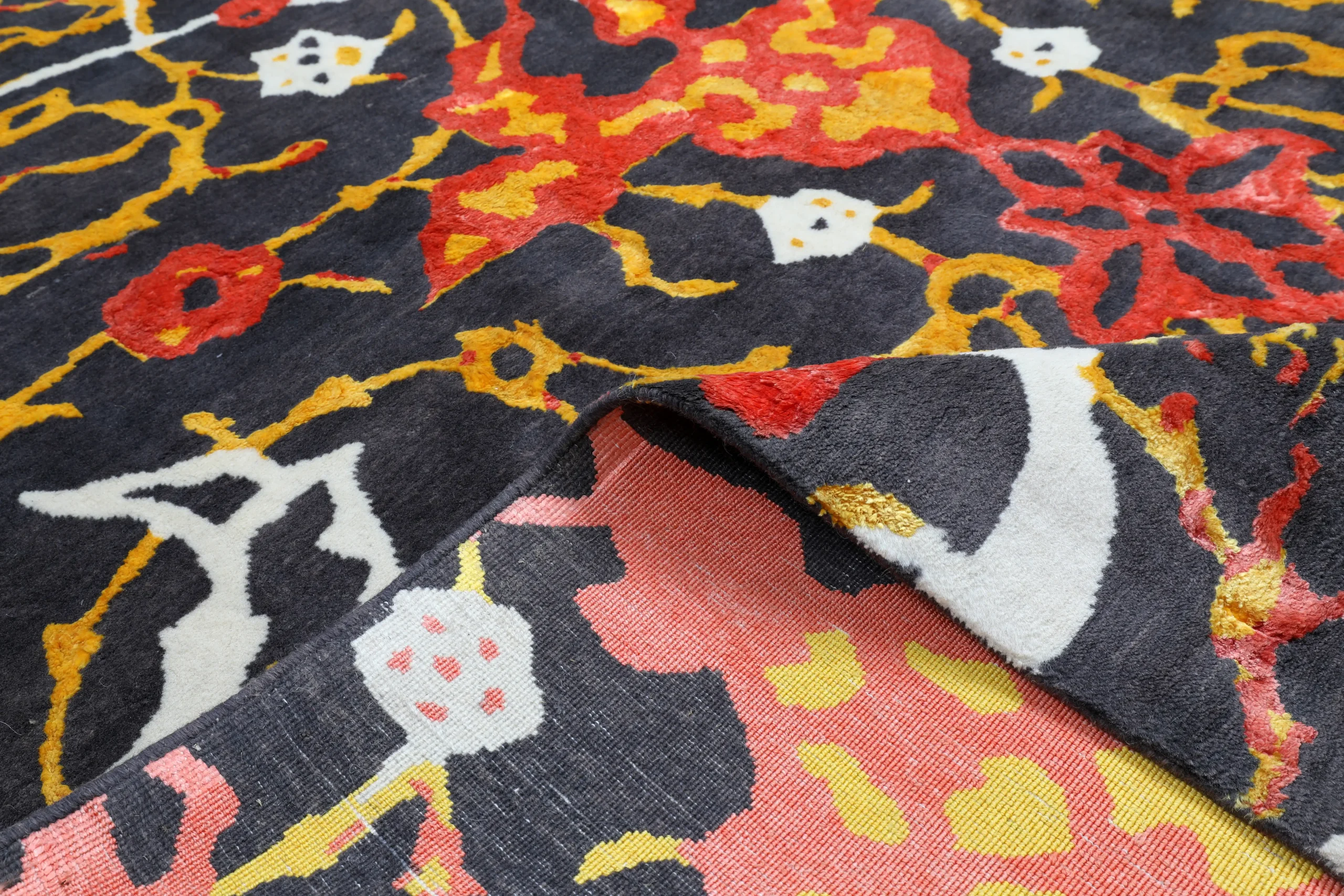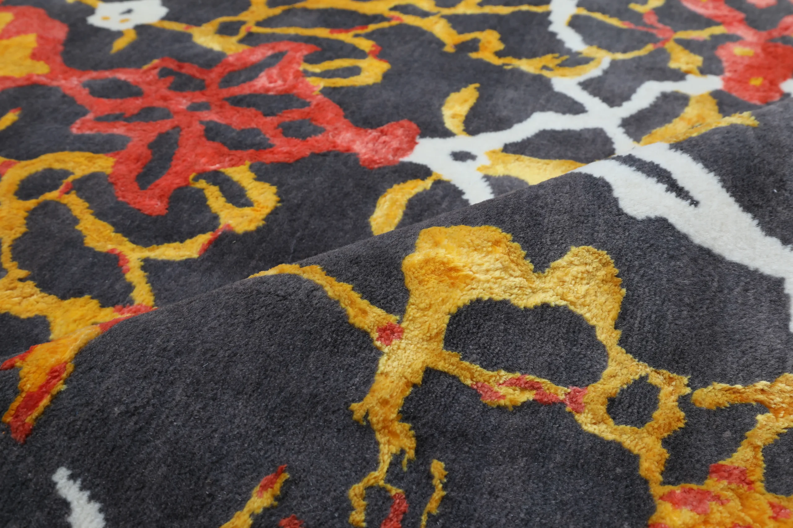 استفاده از نخهای کرک و ابریشم طبیعی باعث لطافت، درخشندگی و دوام طولانیمدت فرش میشود و رنگها را زنده نگه میدارد.