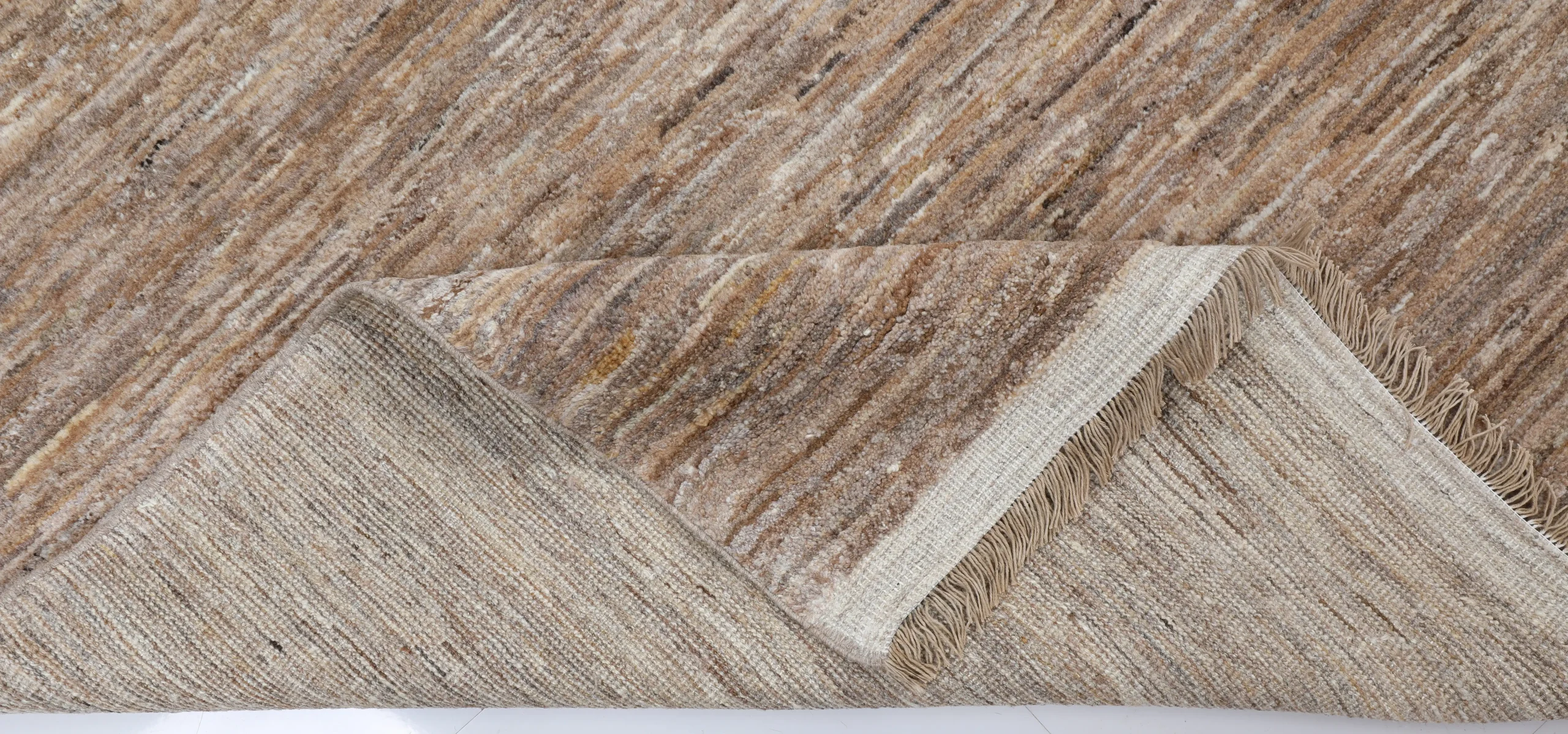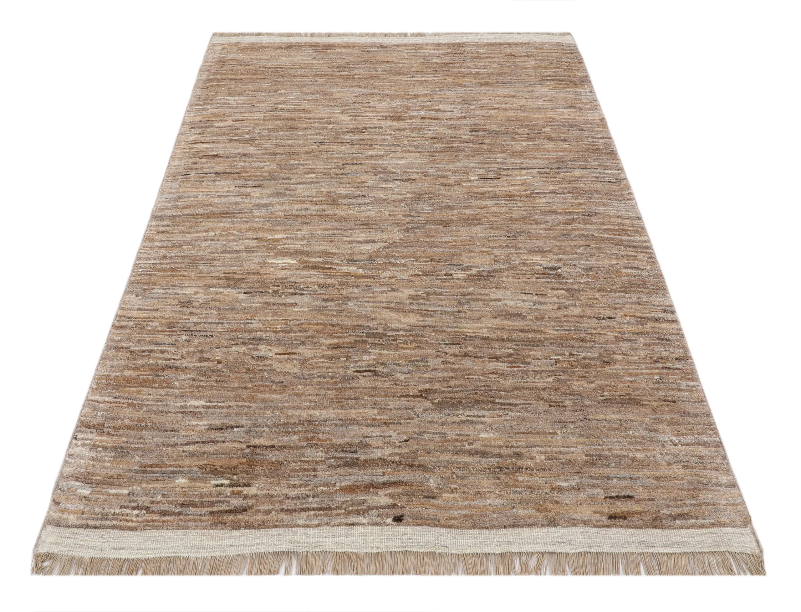 قالیچه دستبافت رنگ قهوهای روشن با طراحی اصیل و بافت ظریف، انتخابی ارزشمند برای دکوراسیون لوکس و ماندگار.