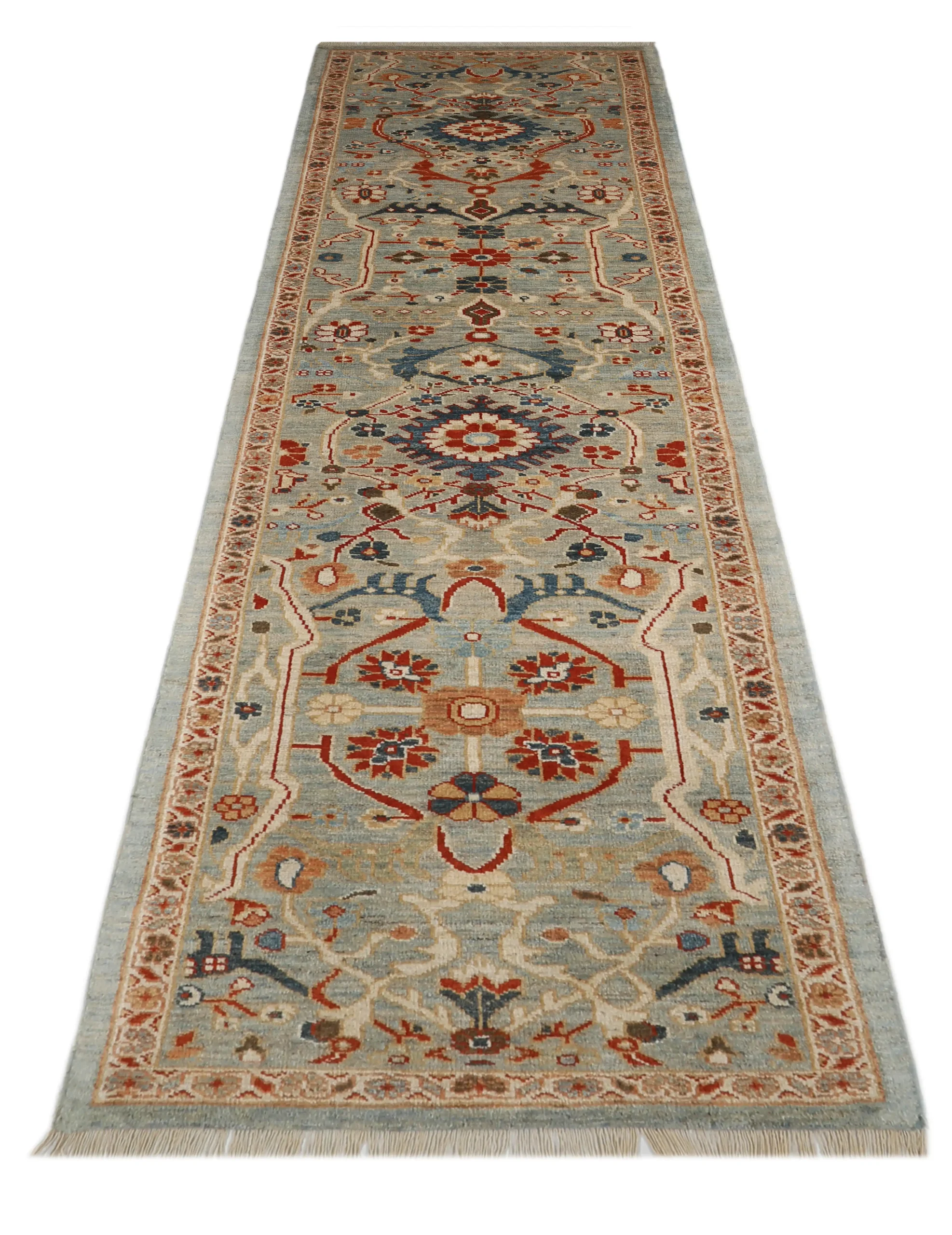 رانر دستبافت سلطانآباد رنگ کرم خاکی با طراحی سنتی و کیفیت ممتاز، جلوهای شیک و ماندگار به راهرو و فضاهای داخلی شما میبخشد.