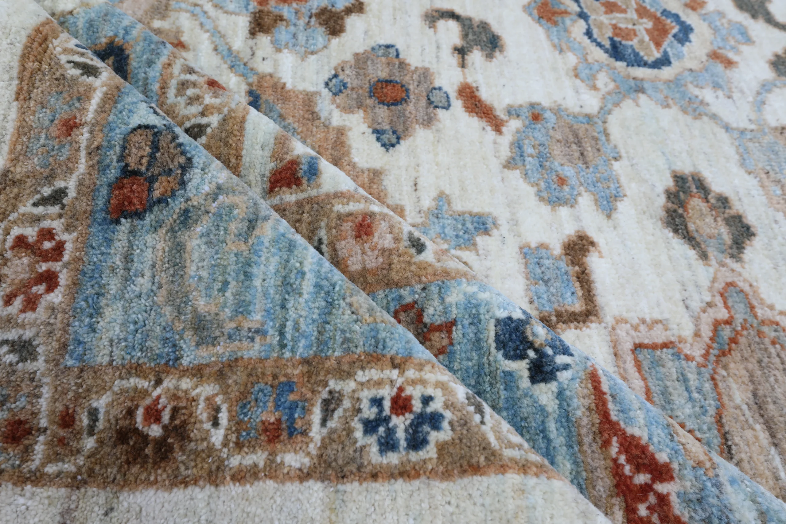 فرش دستباف ۹ متری تبریز رنگ خاکستری آبی دارای مزایای برجستهای است: